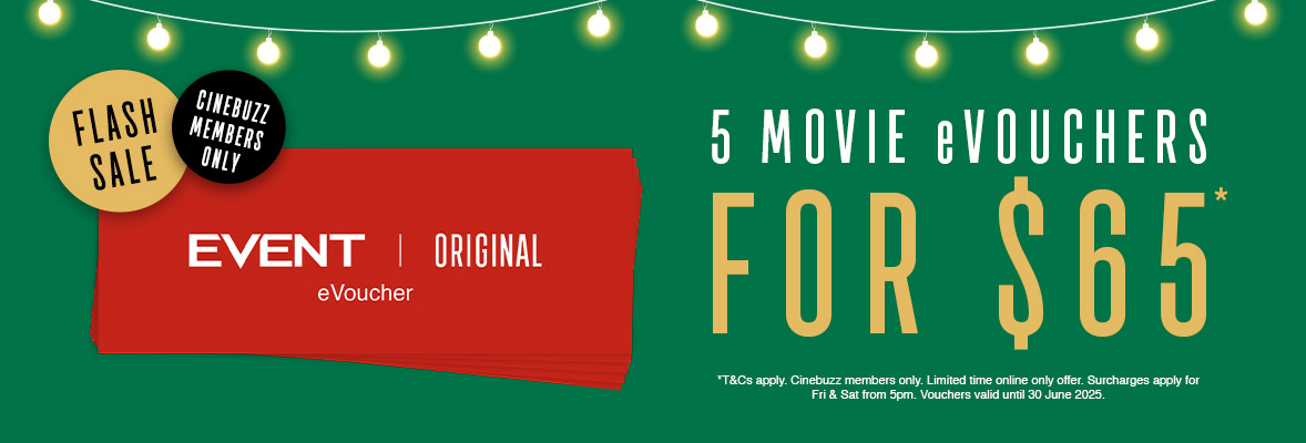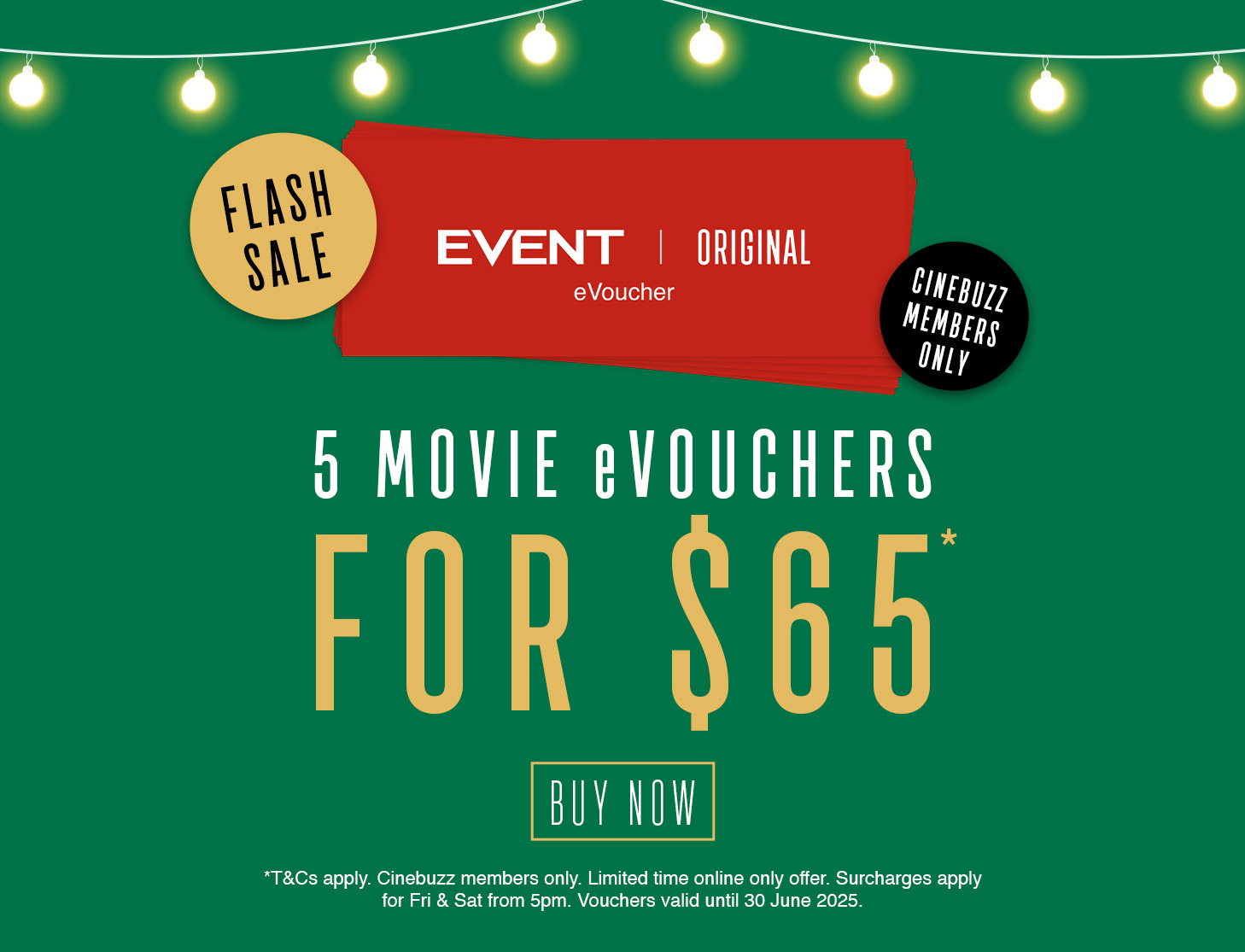 eVouchers will expire 30.06.2025. This eSaver will activate 24 hours after purchase. This eSaver will expire on the date indicated. Not valid for use from 5pm Saturdays. Each unique barcode delivered in this ePackage entitles the holder to 1x Adult admission to any Original session at Event Cinemas or BCC Cinemas locations. Not valid for use at Moonlight Cinemas, IMAX Sydney, Skyline Drive In or Village Cinemas. Not valid for use in ACT, Victoria or Tasmania. This eSaver cannot be redeemed for Gold Class, Sofa, Premium Seating concepts, 4DX, ScreenX, IMAX, Boutique, Event Junior, Movie Marathons, Chicks At The Flicks, group bookings or any sessions classified as festivals, alternate content or special events including but not limited to foreign films. Use your eSaver to book online at eventcinemas.com.au (booking fees apply), or present your eSaver in cinema. Surcharges apply to upgrade to V-Max or 3D screenings and must be paid at the time of redeeming the eSaver. 3D glasses sold separately. Seating is subject to availability. The onus is on the holder to use the eSaver on or before the specified expiry date. eSavers will not be extended, replaced or exchanged and are invalid without an expiry date. Do not share or disclose the barcode or PIN details to ensure your eSaver remains secure. Barcodes cannot be used more than once. Valid for use in Australia only. Your eSaver status (including expiry date) can be viewed online: eventcinemas.com.au/giftcard/balance.