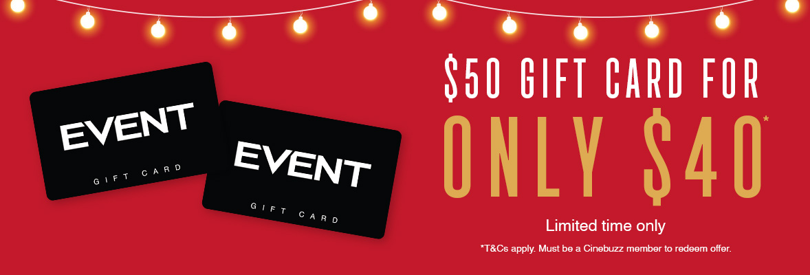 *This offer is available for online purchase only & must be purchased through the promotional page. eGift Cards will expire 31.DEC.2025. Please allow up to 1 hour for eGift Cards to become active prior to redemption. Only valid for redemption at Event Cinemas, BCC, Greater Union, IMAX Sydney, Skyline Drive-In and Moonlight Cinema. Not valid at Village Cinemas. Not valid for use in ACT, Victoria (excluding Moonlight Cinema Melbourne) or Tasmania. Cinebuzz membership details must be entered when prompted. An Event Gift Shop account will be required to complete purchase. See below for full product terms & conditions. Visit our FAQ's for delivery times. Maximum purchase quantities apply. Offer ends 11:59PM AEDT 9th December 2024.