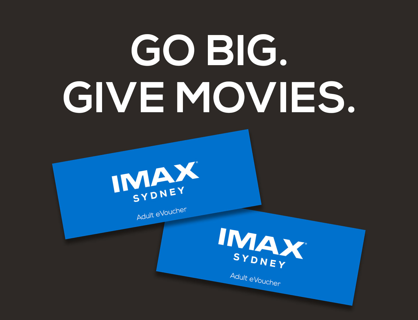 This eVoucher will expire on the date indicated. This eVoucher entitles the holder to 1 x standard admission at IMAX Sydney only. Not valid for use at Event Cinemas, BCC, Skyline Drive In, Moonlight Cinemas or Village Cinemas. This eVoucher cannot be used for Premium IMAX Seating concepts. Not valid for group bookings or any sessions classified as festivals, alternate content or special events. Use your admission barcode to book online at IMAX.com.au (booking fees apply), or present your admission vouchers at the cinema box office. Surcharges apply to upgrade to 3D screenings. 3D glasses sold separately. Seating is subject to availability. The eVoucher must be used on or before the specified expiry date. eVouchers are invalid without an expiry date. Do not share or disclose the barcode or PIN details to ensure your eVoucher remains secure. Barcodes cannot be used more than once. This eVoucher cannot be sold without the prior written permission of The Greater Union Organisation Pty Ltd. Valid for use in Australia only. Your eVoucher status (including expiry date) can be viewed online: eventcinemas.com.au/giftcard/balance.